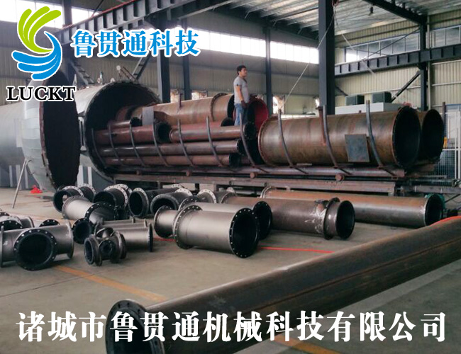巨型襯膠管道、彎頭、閥門、儲(chǔ)罐等,根據(jù)襯膠產(chǎn)品尺寸不同,來(lái)定做硫化罐尺寸。